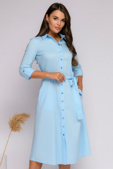 Голубое платье-рубашка с рукавами 3/4 1001 DRESS